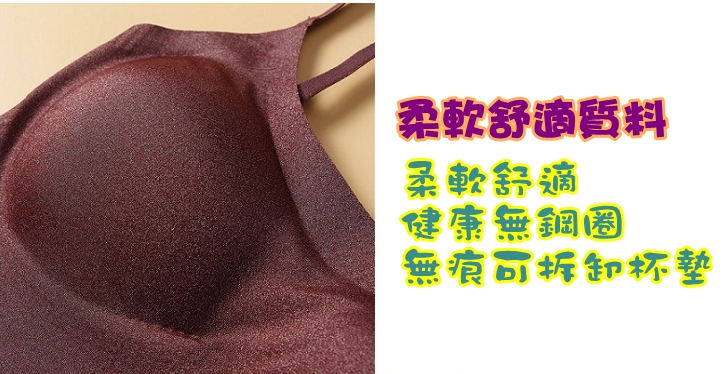 免穿bra!無痕可拆卸杯墊,無鋼圈設計與冰絲材質,少了束縛感,更多的是舒適與親膚好感~