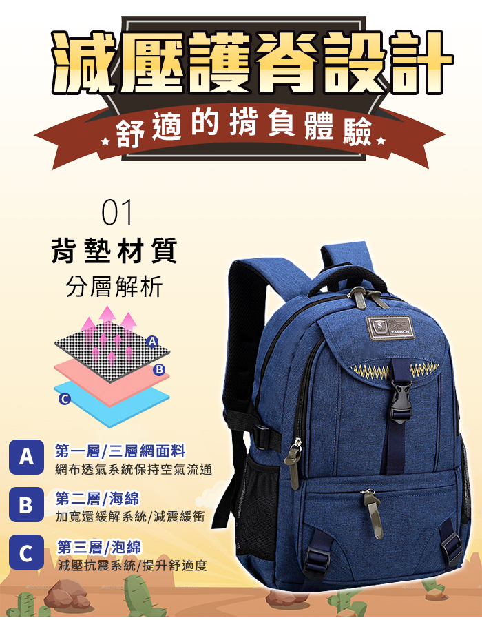 大容量的分層收納空間,質感三色任選,舒適簡約的設計帥氣有型,小孩皆喜愛。